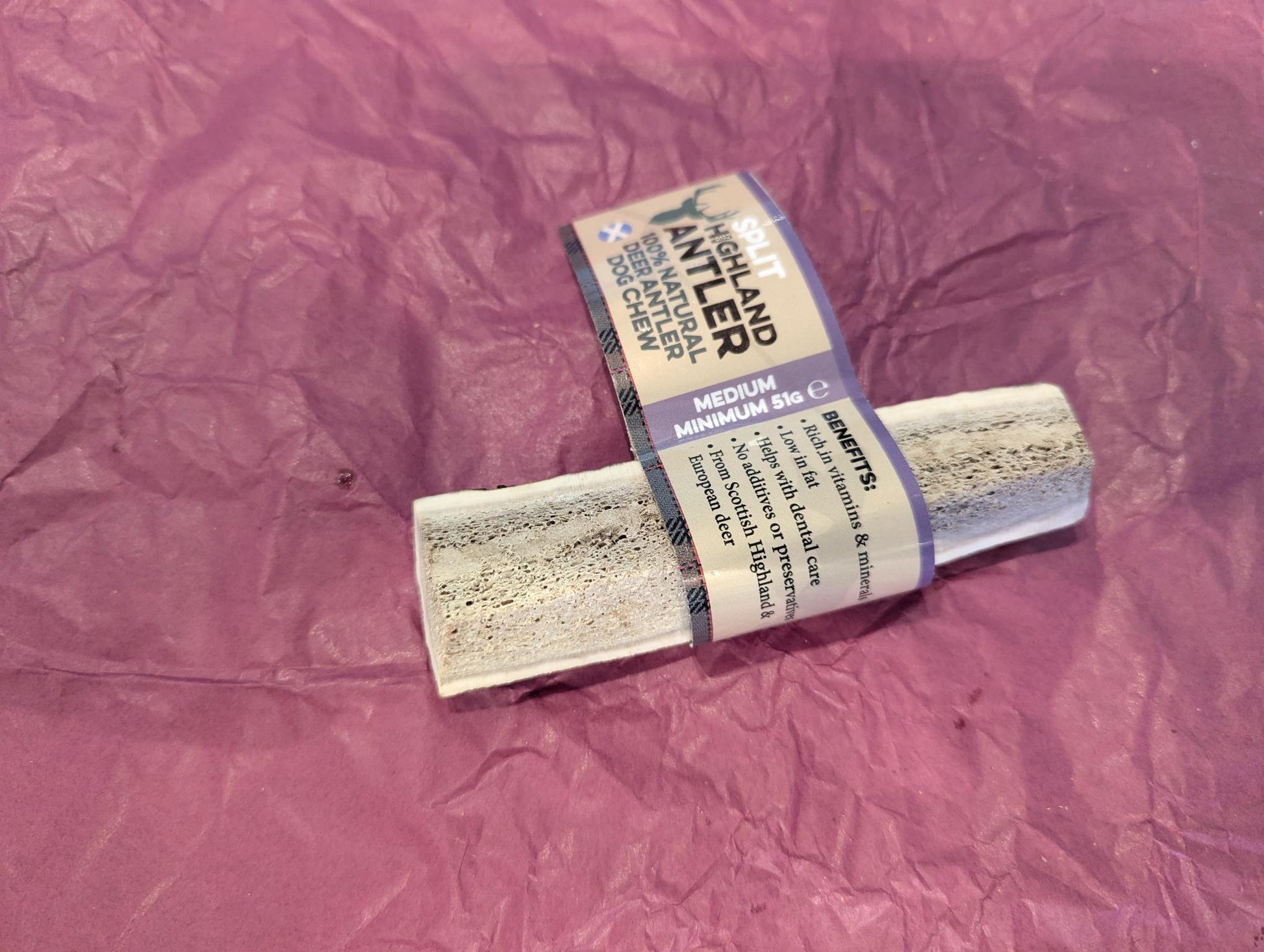 Our split antler is perfect for puppies, older dogs or dogs who enjoy the marrow on the inside of the antler.
